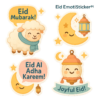 sticker pack called **Eid EmotiSticker™** featuring 1–3 cute, expressive
